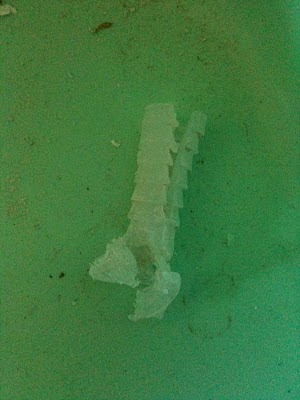 Veamos ahora un taco prácticamente desintegrado ya en el recogedor -y el joío' seguía dentro por más que tiraba encima de la escalera xD-. Hice esta foto mientras me daba la vuelta y decía "muajuajuajuajua" a sus espaldas. xDD